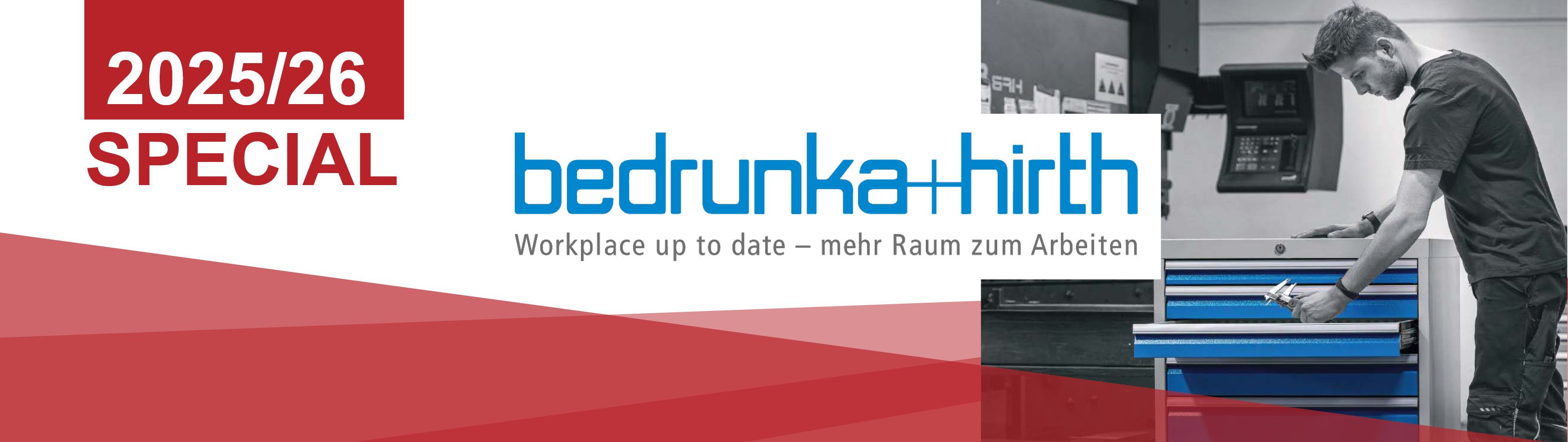 Unser Partner Bedrunka+Hirth, einer der führenden Hersteller von Betriebseinrichtungen und Arbeitsplatzsystemen in Deutschland, hat seine neue Sonderaktion "SPECIAL 25/26" veröffentlicht.