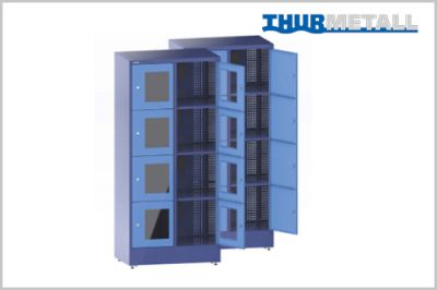 Der E-Fächerschrank von Thur Metall ist eine vielseitige Lösung zum sicheren Lagern und Laden für Akkuwerkzeuge, elektronische